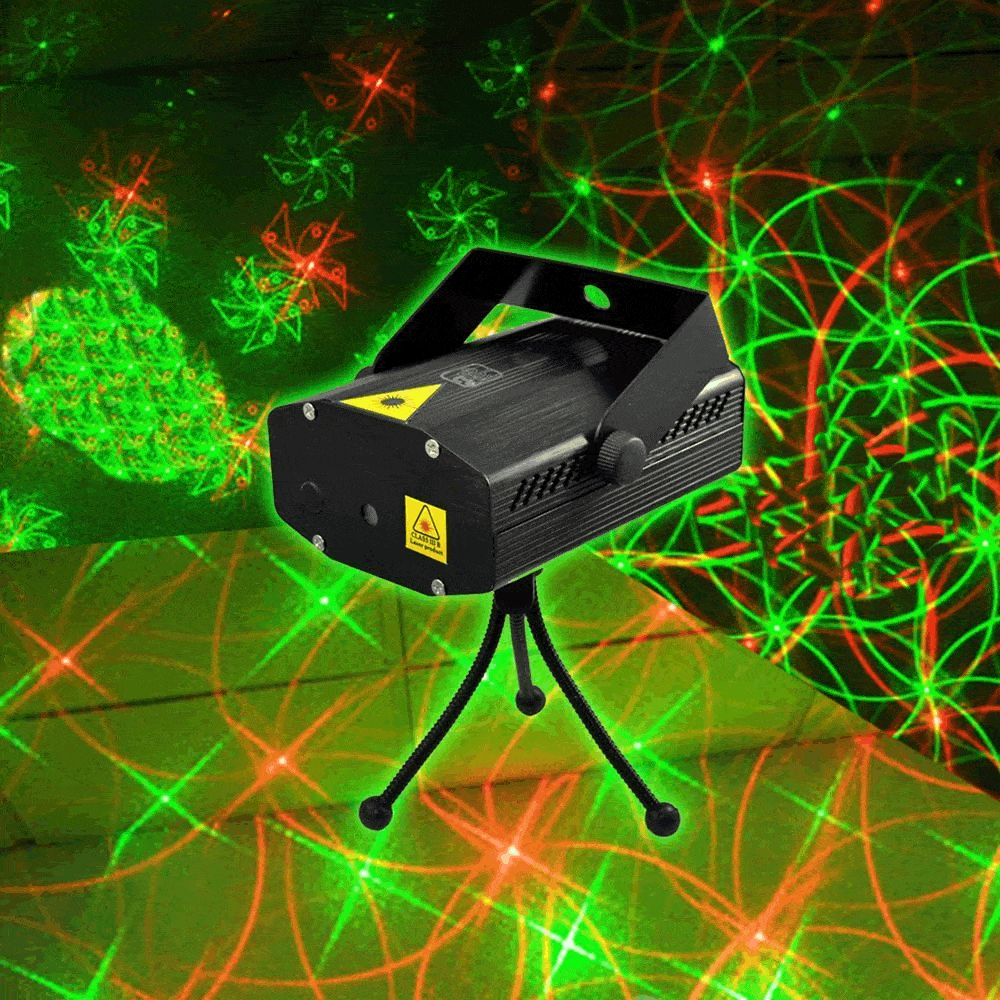 To activate turn the Mini Laser Projector LED Light Show on simply plug the adapter cable into the projector. Set on Auto to have lasers move and collide. You can set the speed, have your setting blink or have the laser sync with music. Height: 4.87 in. - Width: 3.62 in. - Depth: 2.0 in. - Tripod Height: 5.75 in. - Projector Color: Blue - LED Colors: Red and Green - Batteries: Includes a two slot AC/DC adapter. Batteries are not required. - Weight: 1.00 LB